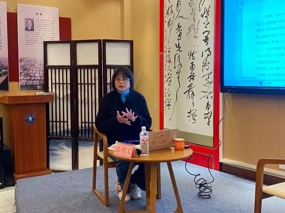 庄鸿文教授在晨光写作工坊指导学生的散文写作。