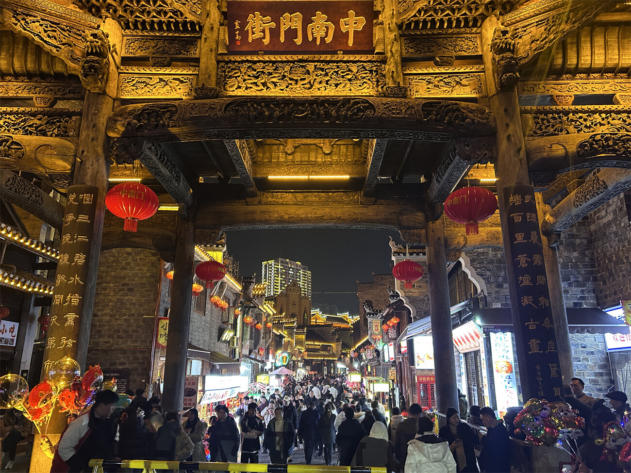 春节期间,我市在中南门古城举办了“中南门之夜·新春大联欢”活动,开展了非遗巡游、百姓大舞台、梵净山歌会、露天电影、年味拾遗、龙游锦江等丰富多彩的特色活动,将春节喜庆的氛围感拉满,吸引了众多市民游客前来打卡。