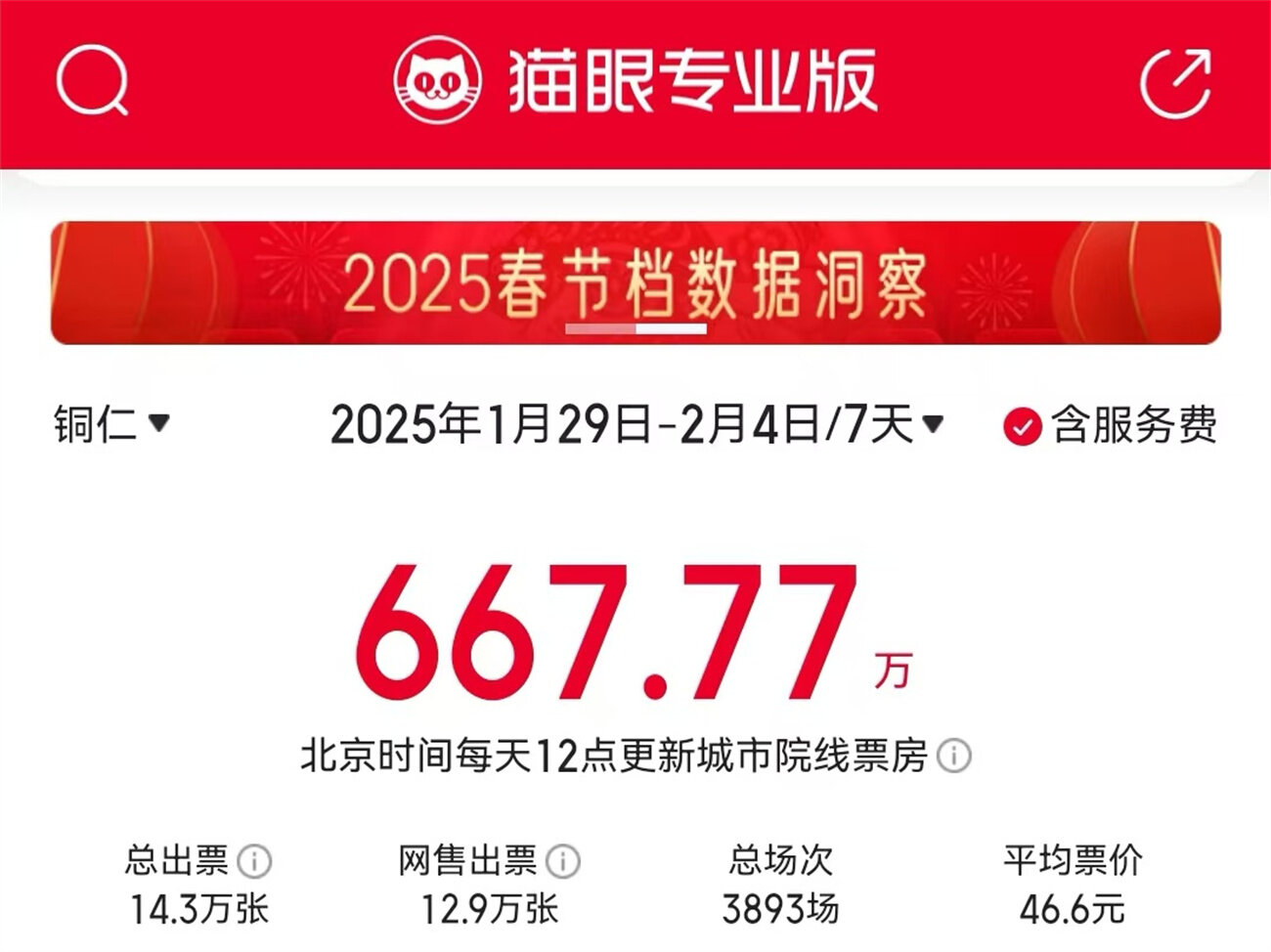 “猫眼专业版”显示,截至正月初七,我市春节档上映电影票房已将近670万元,观影人次为14.3万,相比于去年480多万元的电影票房、10.9万的观影人次,均实现了大幅增长。目前,春节假期虽已结束,我市电影市场仍然热度不减。