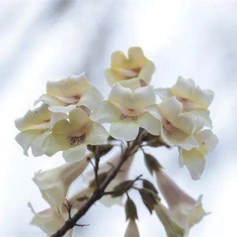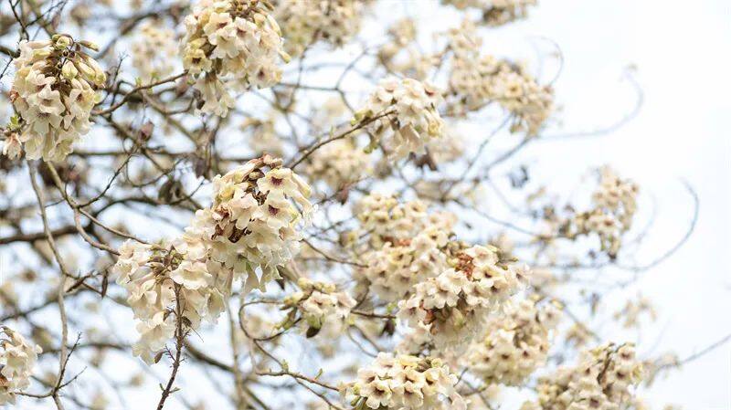0:00 眼下玉屏侗族自治县城区内泡桐花热烈绽放满树繁花似锦如诗如画为这座城市增添了一份别样的浪漫与柔情漫步在玉屏的街道上不经意间抬头便能望见那高大挺拔的泡桐树它的枝条虽疏朗却舒展自如巨大的树冠犹如一把撑开的巨伞为城市撑起一片诗意的天空枝头上泡桐花你挨着我、我挨着你似小巧玲珑的铃铛又宛如欢快吹奏着的小喇叭它们或成串簇拥、或零散分布尽情展现生命的灵动与绚烂泡桐花花色一般呈白色或浅紫色通常由三五朵小花构成小聚伞花序众多小聚伞花序又相互聚合形成极为壮观的大型花序远远望去仿佛是大自然精心绘制的一幅壮丽画卷在四月你总会遇到泡桐感受春日里的无尽芬芳与浪漫 二审:石兰 值班编委:肖霞 总值班:郝从健 稿件投票