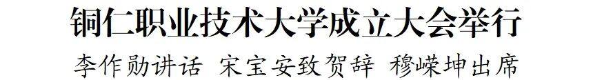 7月11日,铜仁职业技术大学成立大会举行。市委书记李作勋出席并讲话,中国工程院院士,贵州大学党委副书记、校长宋宝安致贺辞。市委副书记、市长穆嵘坤,铜仁学院党委书记朱克乾,贵州大学党委常委、副校长张大林,市委常委、市委秘书长侯刚出席。市委常委、市委宣传部部长许飞宣读《教育部关于同意设置铜仁职业技术大学的函》,副市长李俊宏主持,铜仁职业技术学院党委书记张命华发言。