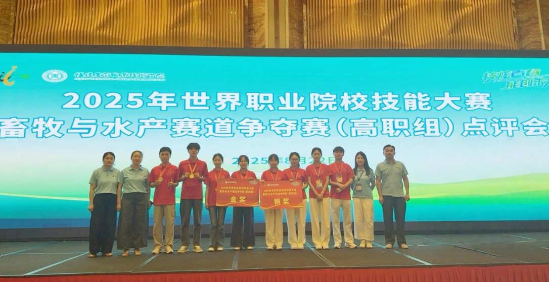 在刚刚落幕的2025年世界职业院校技能大赛中,铜仁职业技术大学农学院闪耀舞台,其两支代表队在竞争异常激烈的“畜牧与水产”赛项(高职组)中表现卓越,勇夺一金一铜,充分展现了铜仁职业技术大学雄厚实力与高水平人才的培养成果。