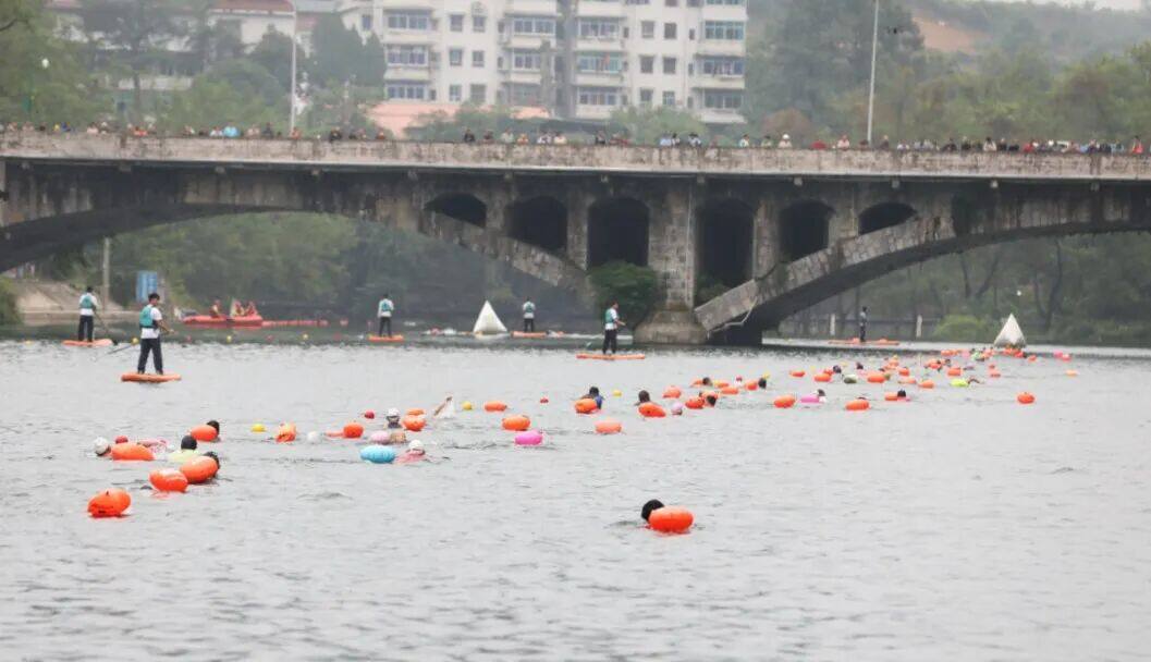 燃情铁三,逐梦江口。上午8点许,活动在庄严的国歌声中拉开帷幕。经过热身运动后,发令枪响起,参赛选手们如同离弦之箭跃入清澈的河水,在河中奋力划水、劈波斩浪,在公路上风驰电掣,在河畔绿茵与智慧赛道上全力冲刺。让参赛选手们在江口的美景中释放活力、在挥洒汗水间挑战自我,尽情感受铁人三项运动的纯粹乐趣与酣畅体验。比赛当中,观众们也卖力地为选手们加油助威,呐喊声此起彼伏,让比赛更添激情。