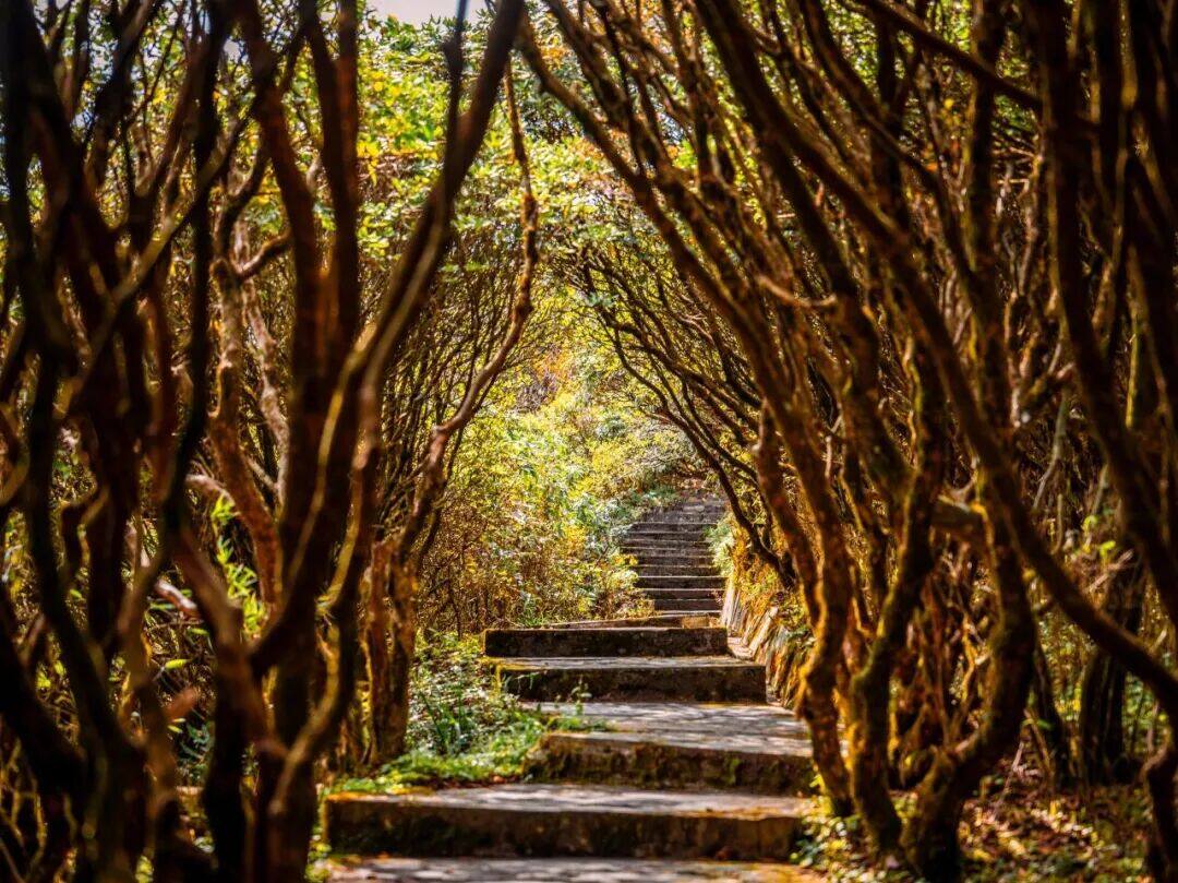 沿着洒满光影的杜鹃长廊散步,独享这一份幽静;