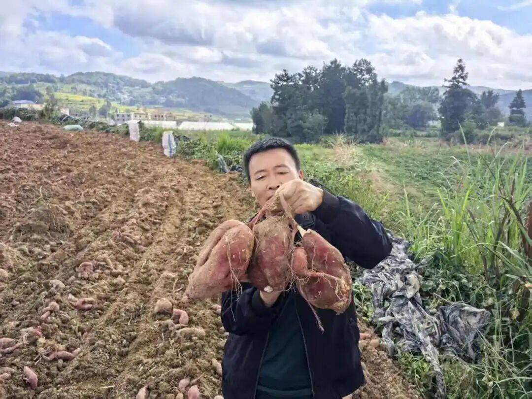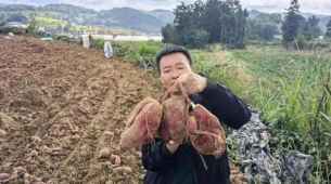 “今年我流转了728亩地种‘双高’红薯,看今天这块地里红薯的长势,每亩产量预计能到5000斤以上,总采收量能有1800多吨!”林仕亮蹲下身拿起一颗红薯,指着饱满的红薯算起了“增收账”,“按每斤5毛的收购价,一亩地能挣2500元,今年光种红薯就能收入180多万元,这‘红疙瘩’真是咱的‘致富宝’!”