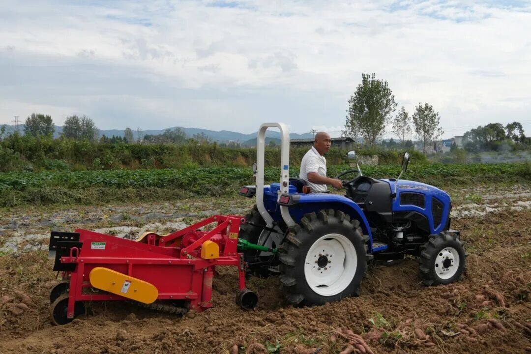 10余名村民分散在田间,有的弯腰捡拾刚出土的红薯,有的忙着去泥分拣,有的快速装袋打包,不一会儿,一袋袋饱满紧实的“红疙瘩”便在田埂边堆成了小山。种植大户林仕亮驾驶着收薯机来回收割,看着一个个色泽鲜亮的红薯从土里翻出,他的脸上笑开了花。