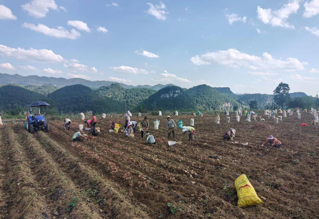 不止林家寨村,2025年张家寨镇全镇“双高”红薯种植面积达4370余亩,预计年产值近900万元。为了让红薯产业稳扎稳打,镇里全程提供“管家式”服务:在育苗、种植、管理等关键节点,农技人员总会准时到田间地头送技术、解难题;还提前与贵州益兴淀粉加工有限公司签订产销协议,为红薯打通了稳定销路,彻底解决了农户“卖薯难”的顾虑。