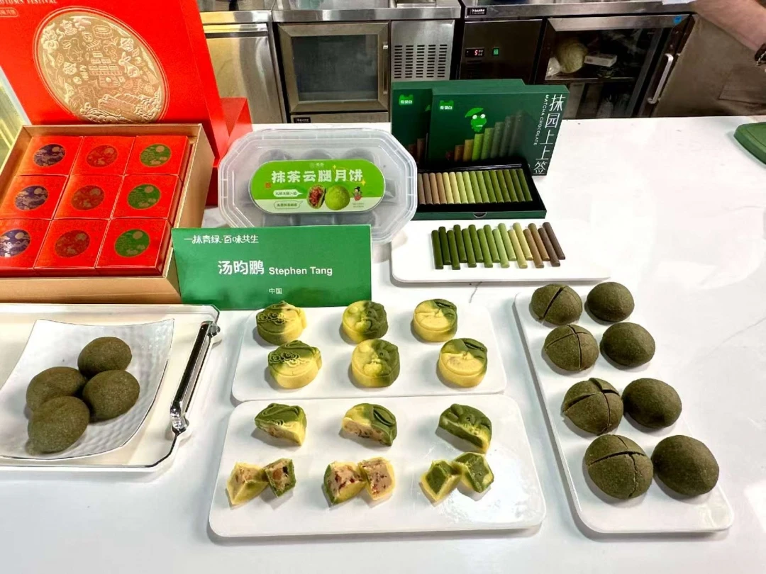 汤昀鹏正在调配制作糕点的抹茶酱。