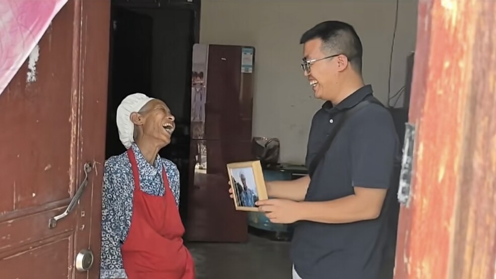 当装裱好的照片送到老人手中时,李奶奶摩挲着相框,眼眶泛红:“这辈子还没这么正式地照过相,拍得真精神!”一张小小的照片,成了连接他与老人的纽带,也让寂静的村庄多了份温暖的牵挂。