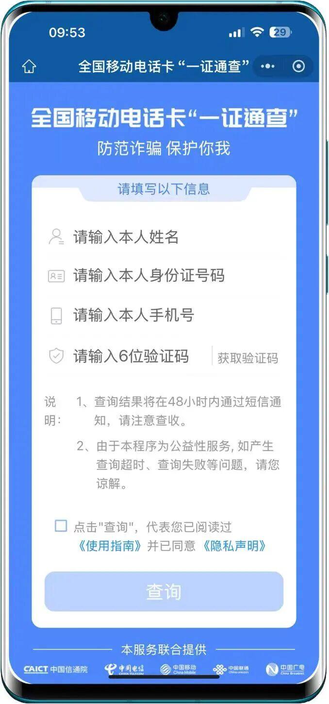 “电话卡‘一证通查’”服务