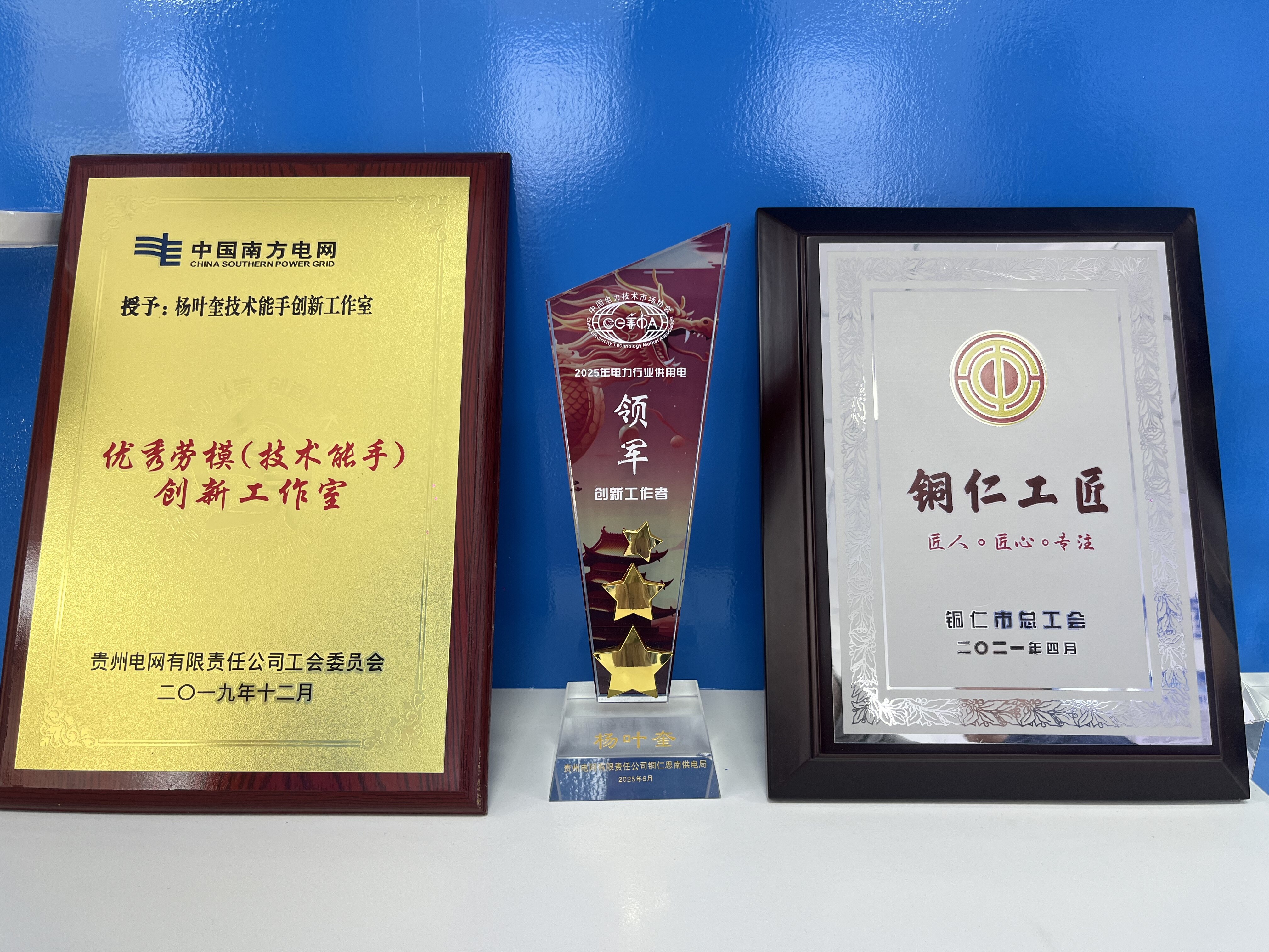33年职业生涯中,无论身处何种岗位,杨叶奎都将工作做到极致。截至目前,他已斩获国家专利42项,发表技术论文30余篇,研发原创性职工技术成果16项,荣获国家及省部级技术创新成果奖80余项,覆盖营销计量、配网、变电、安全工器具等领域,多项成果在南网商城推广应用。其带领的工作室连续6年获评贵州电网公司优秀创新工作室,个人先后获南方电网公司“南网工匠”、贵州省第三届“电力工匠”、第五届“十大杰出青年”、铜仁工匠等40多项荣誉。