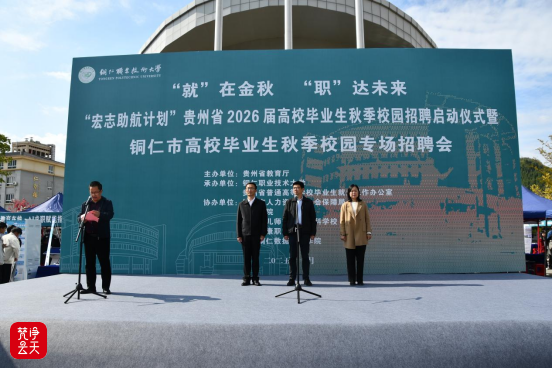 10月27日,“宏志助航”贵州省2026届高校毕业生秋季校园招聘活动在铜仁职业技术大学正式启动。本次活动由贵州省教育厅主办,铜仁职业技术大学与贵州省普通高等学校毕业生就业工作办公室共同承办,标志着全省高校毕业生就业促进工作全面展开。