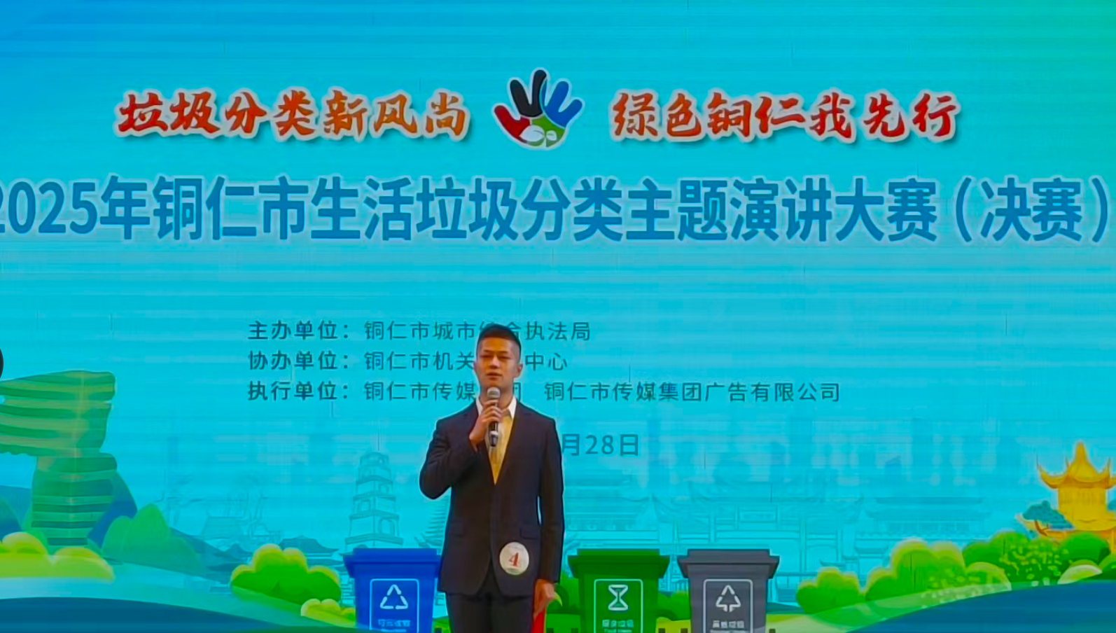 10月28日下午,2025年铜仁市生活垃圾分类主题演讲大赛(决赛)圆满落幕。比赛以“垃圾分类新风尚·绿色铜仁我先行”为主题,由铜仁市城市综合执法局主办、铜仁市机关事务中心协办。