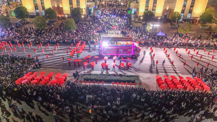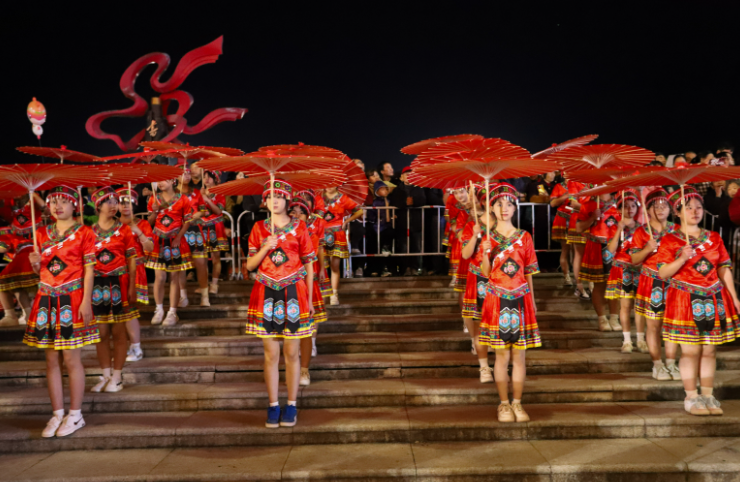 巡游途中,土家摆手舞与融入现代元素的油纸伞舞轮番上演。身着土家盛装的姑娘们裙摆飞扬,随着欢快的节奏扭动腰身,摆手、踢脚、转身,每一个动作都充满了感染力;手持油纸伞的舞者们则身姿轻盈,油纸伞在手中开合转动,伞面上的花鸟图案与现代舞步碰撞出奇妙的火花。最让人惊喜的是,游客们可以零距离与土家歌手对唱山歌,来自五湖四海的声音交织在一起,不分你我。在摆手舞的带动下,越来越多的游客加入进来,从最初的羞涩观望到后来的尽情舞动,上万名游客随着音乐一起摇摆,街头瞬间变成了“万人蹦迪现场”,欢乐的氛围感染着每一个人。
