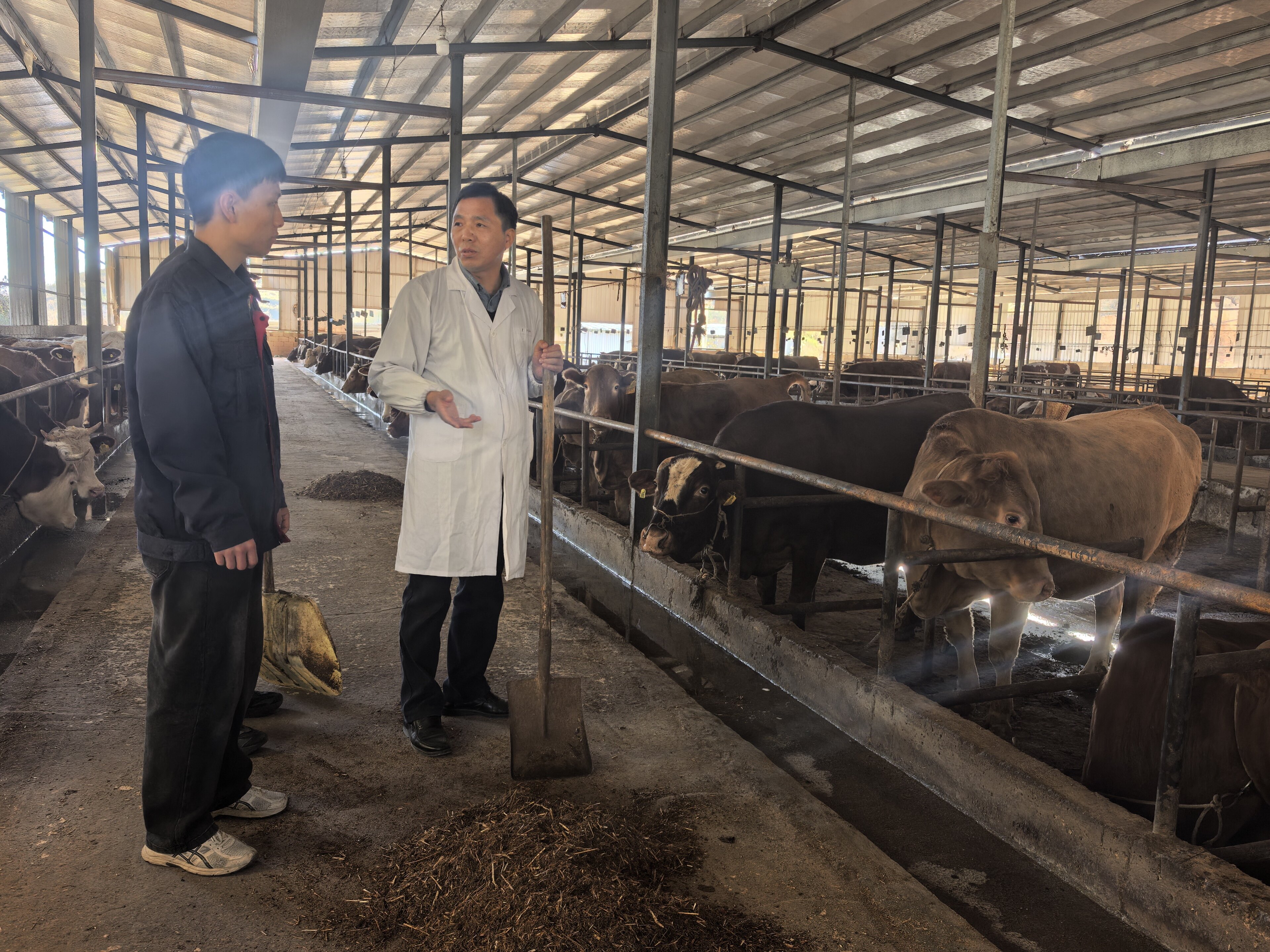 在松桃牧兴肉牛养殖场内,400多头肉牛膘肥体壮、长势喜人。养殖场负责人杨长能正围着张华琦教授,认真学习新一批本地黄牛的雪花牛肉养殖配方。据了解,该养殖场自2016年建成以来,从初期的牛场规划建设到后期的肉牛养殖、病害防控等全环节,均由张教授全程提供技术指导。2018年,经过多年潜心钻研,张华琦成功研发出雪花牛肉饲料配方。在这一技术支撑下,杨长能逐步扩大雪花牛肉养殖规模,养殖场利润实现大幅增长。