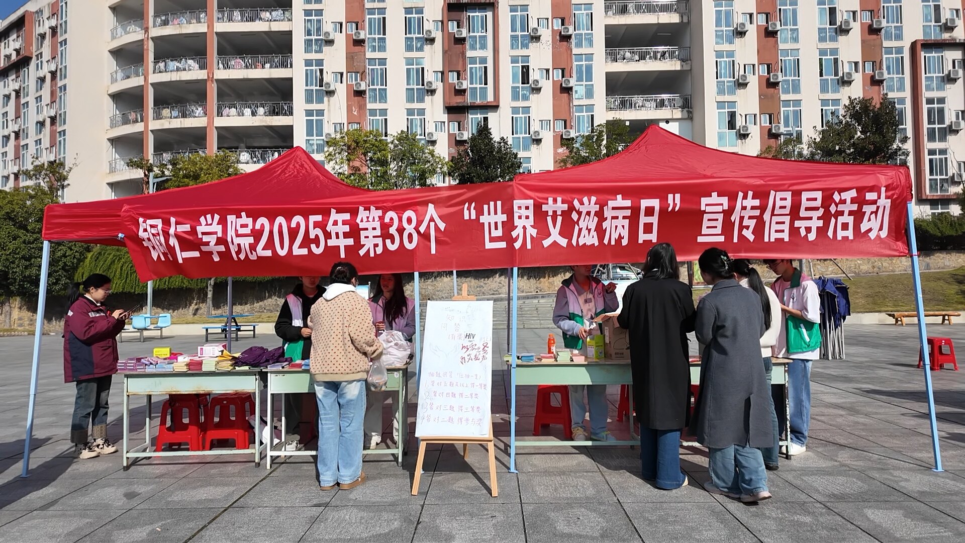 12月1日,在第38个“世界艾滋病日”当天,铜仁市卫生健康局、市计划生育协会、市疾病预防控制中心联合铜仁市民政局、铜仁市红十字会、铜仁市卫生健康药具管理中心等相关部门,走进铜仁职业技术大学、铜仁学院等高校开展“12.1世界艾滋病日”主题宣传活动。