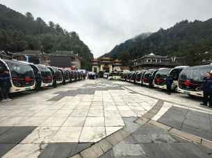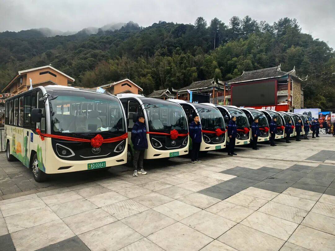 1月1日,梵净山景区84辆新能源观光车正式上线,首发启动仪式在景区广场举行。