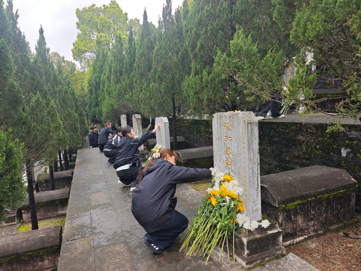 思政课堂不止于聆听,更见于行动。思政课结束后,同学们手持湿巾,逐一来到烈士墓碑前,细心擦拭碑身、轻抚碑文,用质朴的实际行动表达对革命先烈的缅怀与敬仰。指尖拂过冰冷的墓碑,目光凝视着碑文上的英烈姓名,青年学子们在与历史的深情对话中,接受了深刻的精神洗礼,红色基因在心底悄然扎根、愈发厚重。